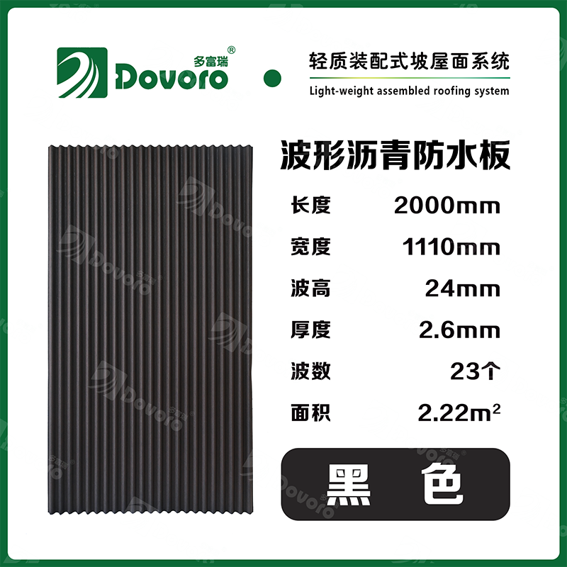 瀝青材質(zhì)防水效果出色,有效的搭接進(jìn)一步保證防水。采用波浪形造型有效增加產(chǎn)品的抗壓能力,產(chǎn)品配合各類干掛瓦材游刃有余。