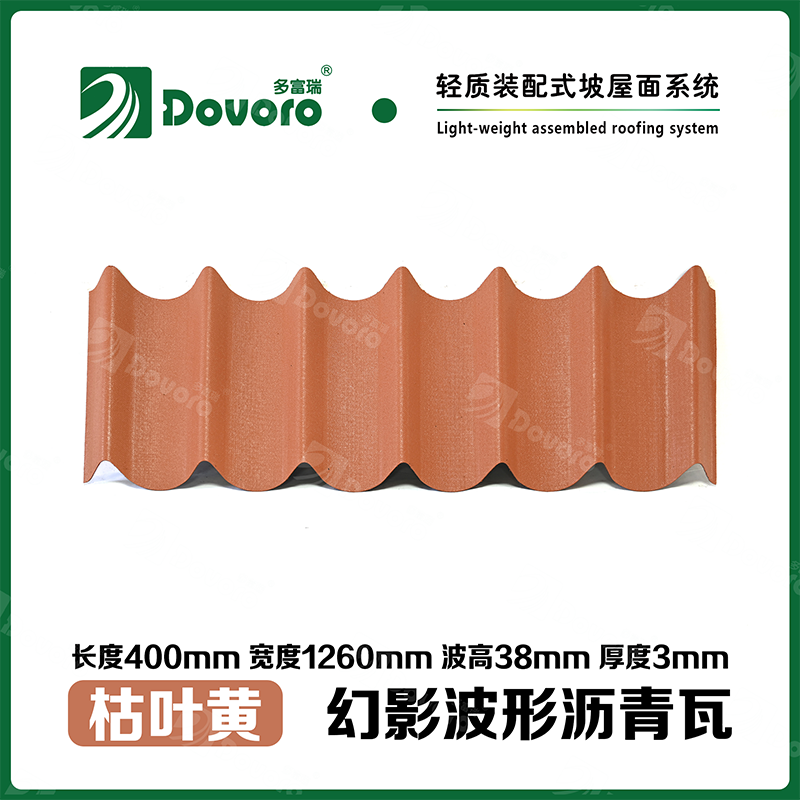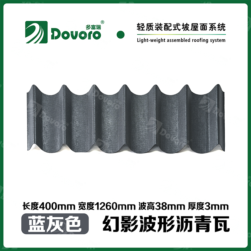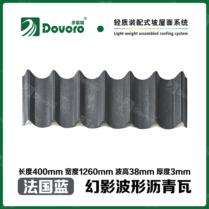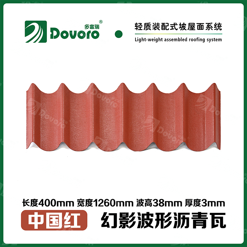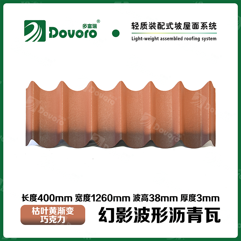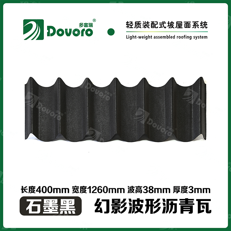 多富瑞幻影波形瀝青瓦是由礦植物纖維板經(jīng)過(guò)整形后浸漬瀝青而成,一次成型的基層板在高溫下浸漬瀝青,使瓦材整體性更加牢固;熱固性樹脂保證了瓦材的強(qiáng)度和剛度;進(jìn)口原料配合先進(jìn)的著色工藝確保顏色持久、混色噴涂工藝使瓦材外觀高雅、色彩美觀、立體質(zhì)感。