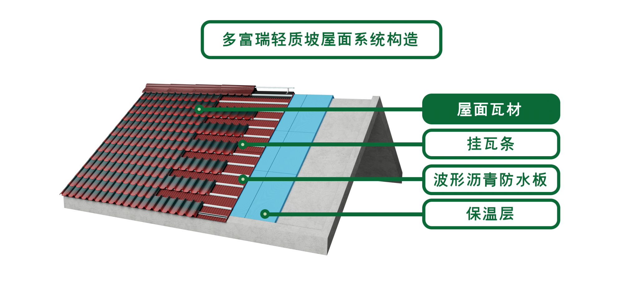 波形瀝青防水板可搭配各類瓦材面層,系統(tǒng)結(jié)構(gòu)簡潔、施工方便快速度。