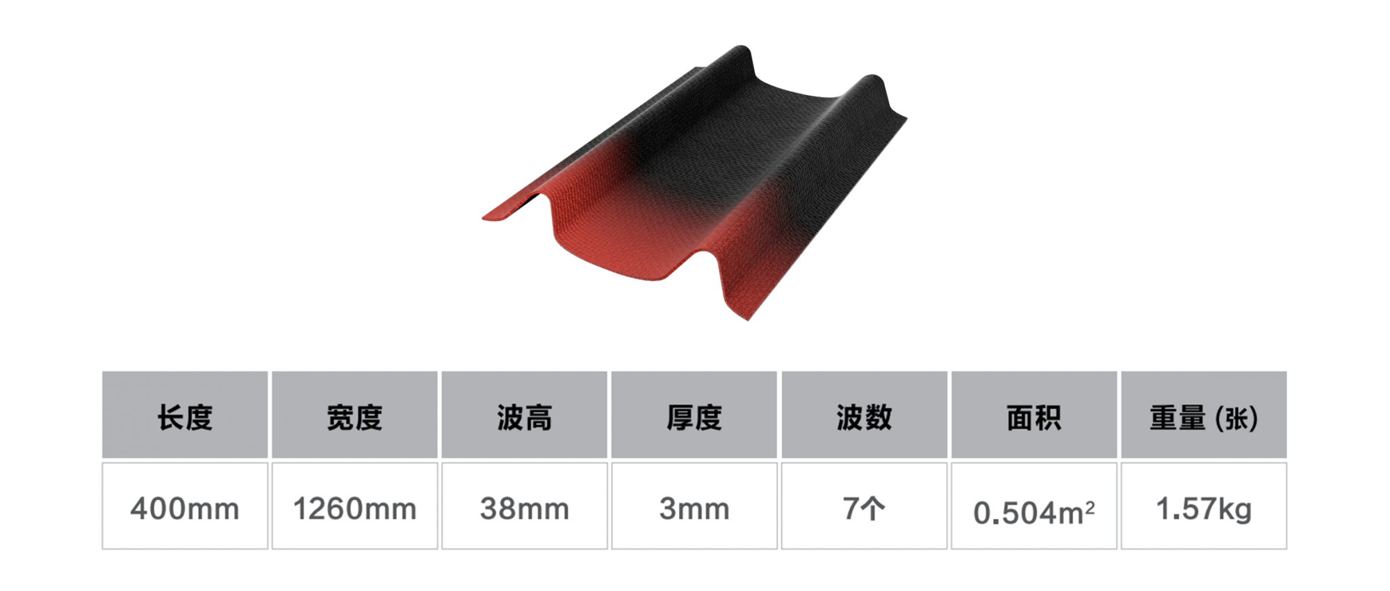 瀝青材質(zhì)防水效果非常出色,有效的搭接進一步保證防水。采用波浪形造型有效帶走瓦下熱量和潮氣,隔熱和通風(fēng)除濕效果極佳。