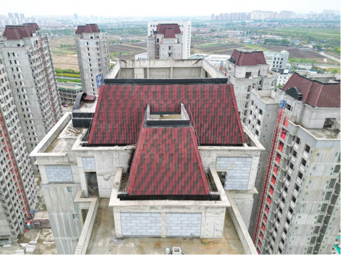 本項(xiàng)目位于天津市津南區(qū)北閘口示范鎮(zhèn),建筑面積30.82萬(wàn)平方米,實(shí)現(xiàn)1429戶居民的“安居夢(mèng)”。在本項(xiàng)目中,多富瑞波形瀝青瓦作為裝飾性材料,為建筑屋面增添獨(dú)特魅力。