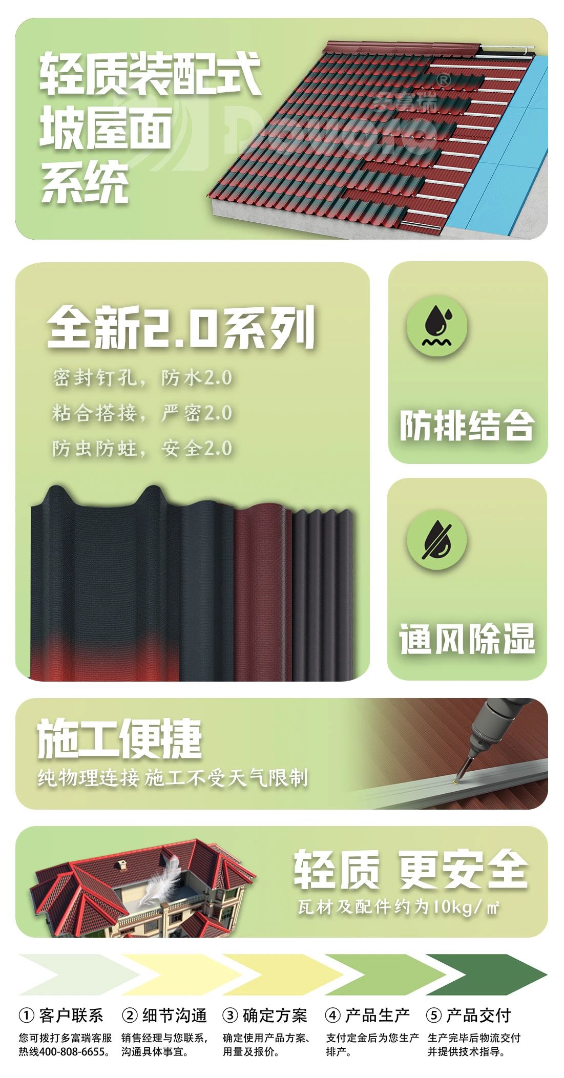 多富瑞輕質坡屋面系統(tǒng)為“碳中和”貢獻出一份力。輕質坡屋面系統(tǒng)的施工過程中,不產生污水廢氣,無需大型設備,對環(huán)境無污染,能源消耗極小。