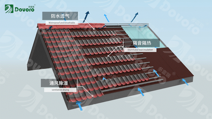 流通的空氣可以帶走屋面系統(tǒng)中的熱量,為瓦材降溫。降低屋面瓦材的高溫負擔,延長屋面壽命。