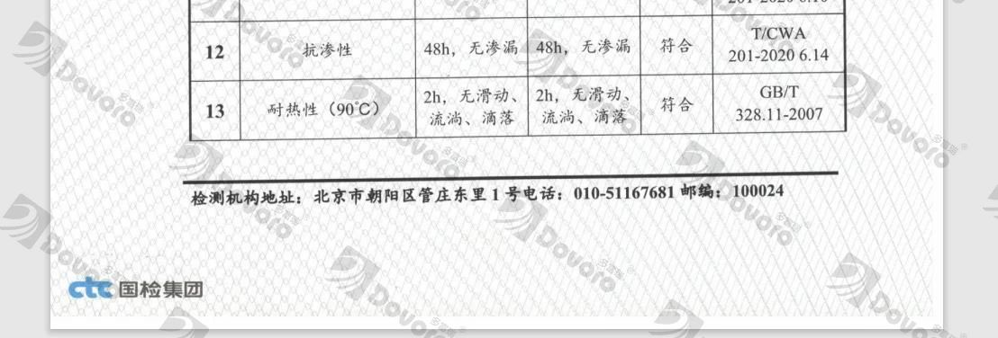 根據國家建筑材料檢測中心的檢測報告,波形瀝青瓦的耐熱性在90攝氏度的高溫下,性能依舊穩(wěn)定。在多富瑞2.0系列的產品新增自粘聚合物改性瀝青密封帶,可保證產品100攝氏度下的耐候穩(wěn)定性。