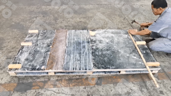在木板的兩側,使用等同波高,等同波距的木肋條進行產品固定,使得產品在運輸中更加穩(wěn)定,不會因為貨車的加減速而造成整體位移,同時保證貨物的尺寸不會變化。