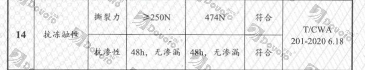 凍融測試是將瓦材冰凍后再解凍,模擬測試在極寒天氣下的瓦材性能???jié)B性和撕裂力同樣能滿足指標要求。瓦材即使面對北方的低溫,也能保持性能的穩(wěn)定。