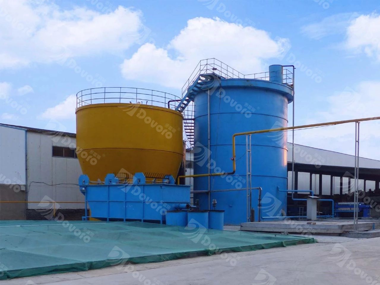 礦物纖維與木纖維作為原材料進入多富瑞的生產(chǎn)基地,經(jīng)過攪拌罐初步的加水稀釋攪拌,礦物纖維與木纖維得到充分混合,成為紙漿,存放于纖維儲存罐中。