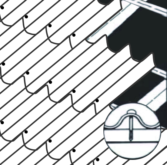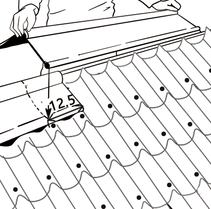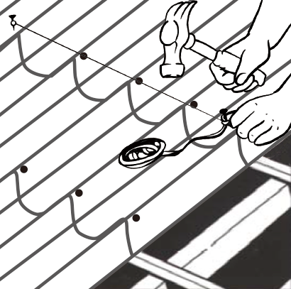 根據(jù)掛瓦條安裝位置彈線,用專用瓦釘將瓦材固定在掛瓦條上,瓦釘固定在波峰處,并垂直于屋面。