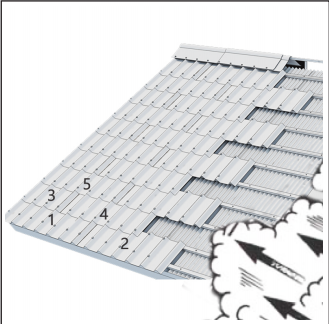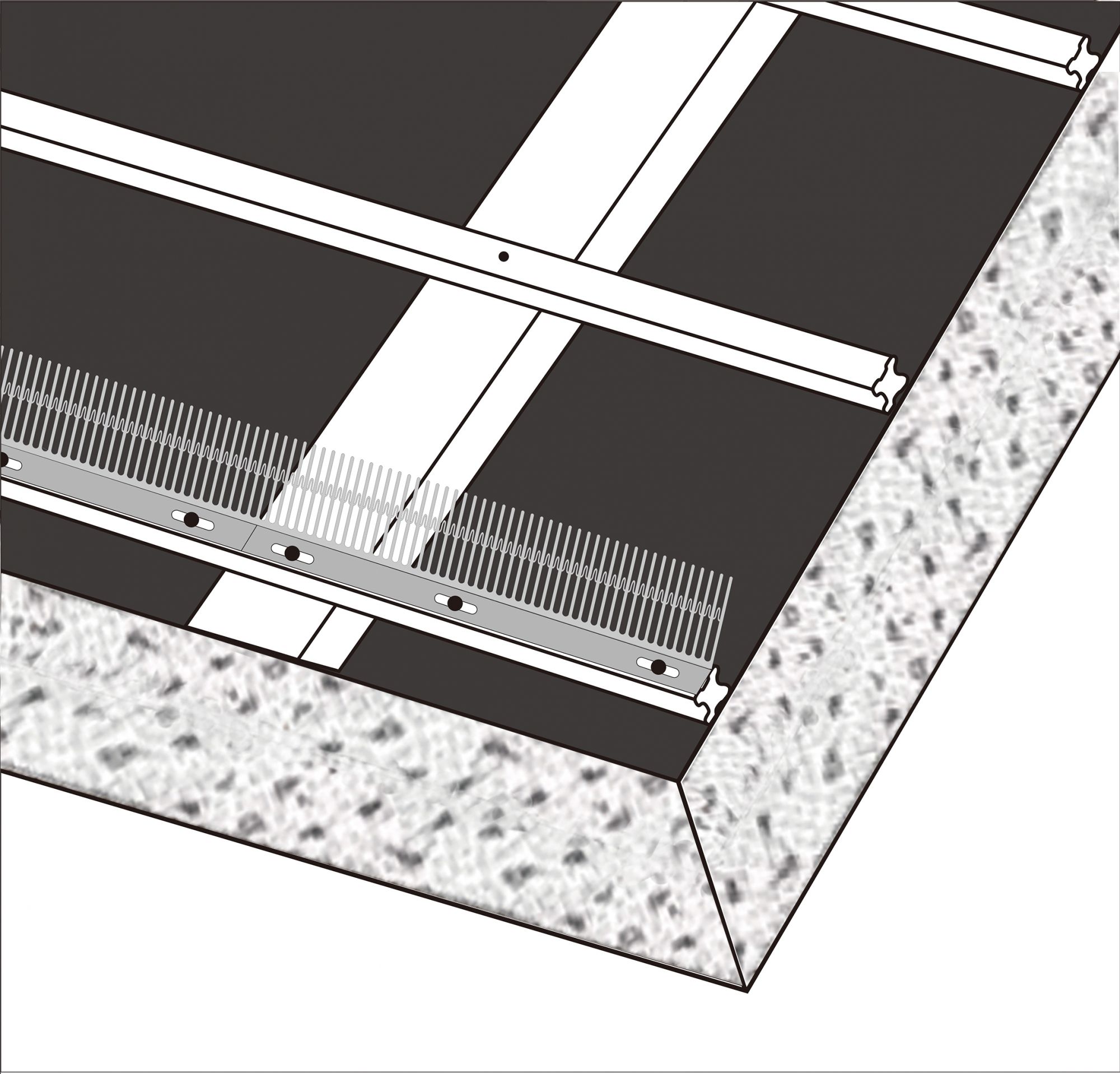 在檐口第一排掛瓦條上安裝檐口擋篦,防止鳥類進入。