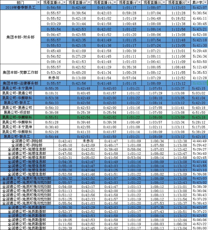 自2月18日集團(tuán)開展線上培訓(xùn)以來,全體員工都能夠積極認(rèn)真的參加學(xué)習(xí),學(xué)習(xí)效果顯著。為進(jìn)一步提高學(xué)習(xí)質(zhì)量,激發(fā)員工學(xué)習(xí)的積極性和主動性,集團(tuán)人力資源部對全體員工2月18-20日的學(xué)習(xí)時長進(jìn)行了統(tǒng)計,并查閱了學(xué)習(xí)筆記,經(jīng)統(tǒng)計共有周晶瑩、洪洋、李連震等30名員工學(xué)習(xí)時間最長,并且筆記記錄完整,他們的學(xué)習(xí)態(tài)度值得點贊。也希望大家在接下來的學(xué)習(xí)中能夠做好筆記,認(rèn)真思考,在“2020質(zhì)量提升年”中該如何去做。