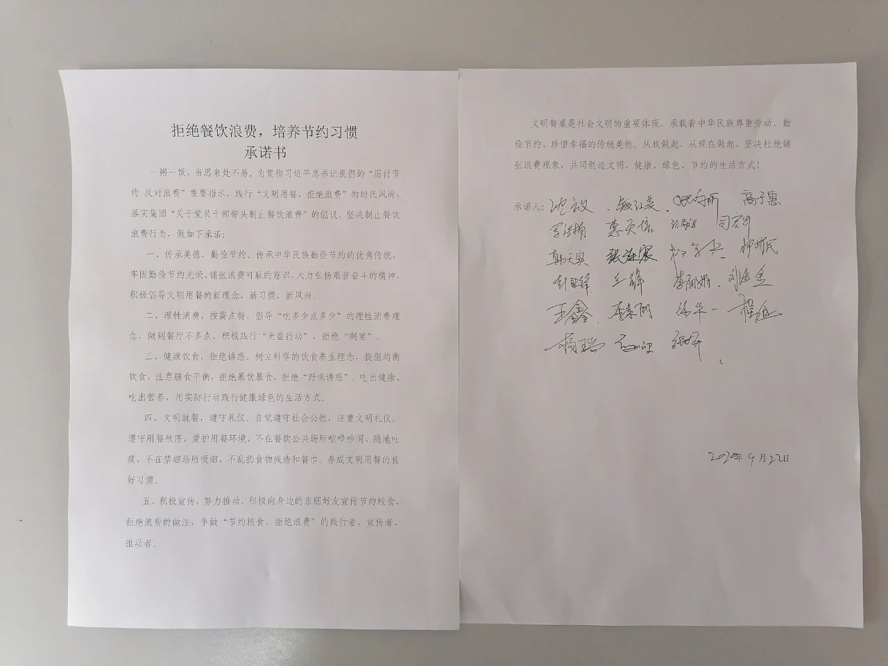 拒絕餐飲浪費(fèi),培養(yǎng)節(jié)約習(xí)慣 ——金潤德(測繪)全體員工簽署承諾書
