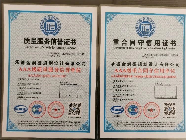 示范單位證書”、“AAA級質(zhì)量服務(wù)榮譽(yù)證書”、“AAA級重合同守信用證書”并得到了“AAA級信用單